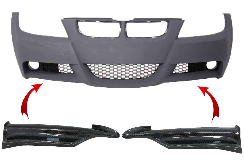 Carbon Front Splitters Spoiler suitable for BMW 3 Series E90 E91 Sedan Touring (2005-2008) only M-tech Bumper